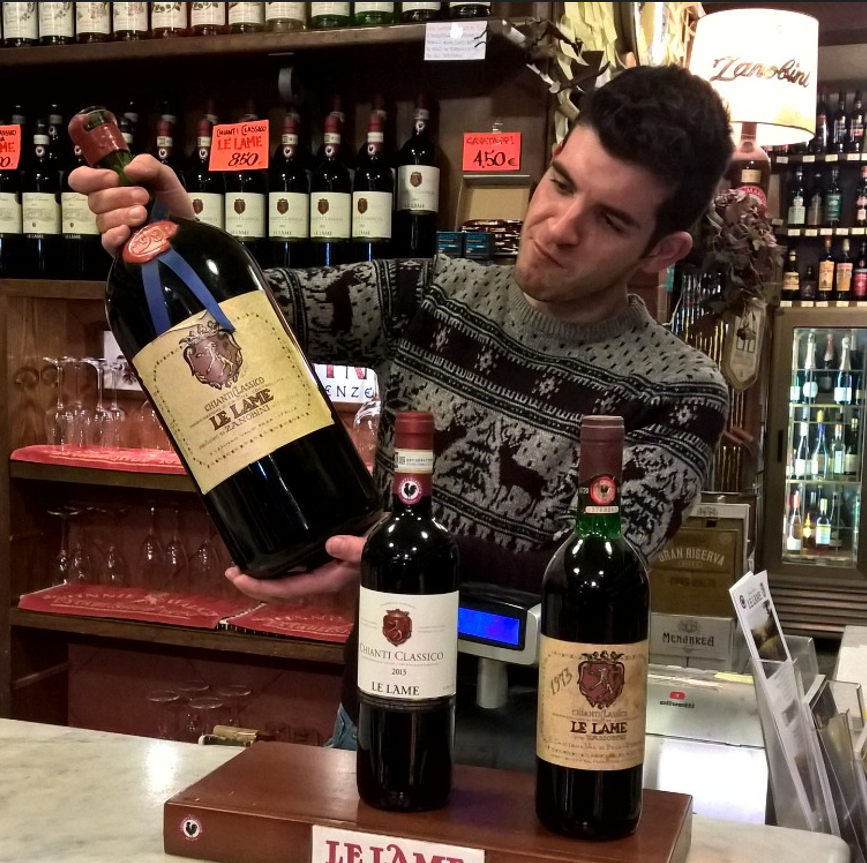 Oltre alle tante etichette di vini nazionali e internazionali (circa 2.000–2.500), l’enoteca propone anche i vini prodotti direttamente dalla famiglia Zanobini nella Tenuta Le Lame a San Casciano in Val di Pesa, nel cuore del Chianti Classico.